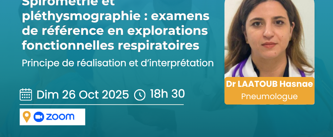 L’intervenante était le Dr LAATOUB Hasnae, Pneumologue, qui a partagé son expertise sur les protocoles de réalisation technique et les méthodes d’interprétation clinique des résultats.